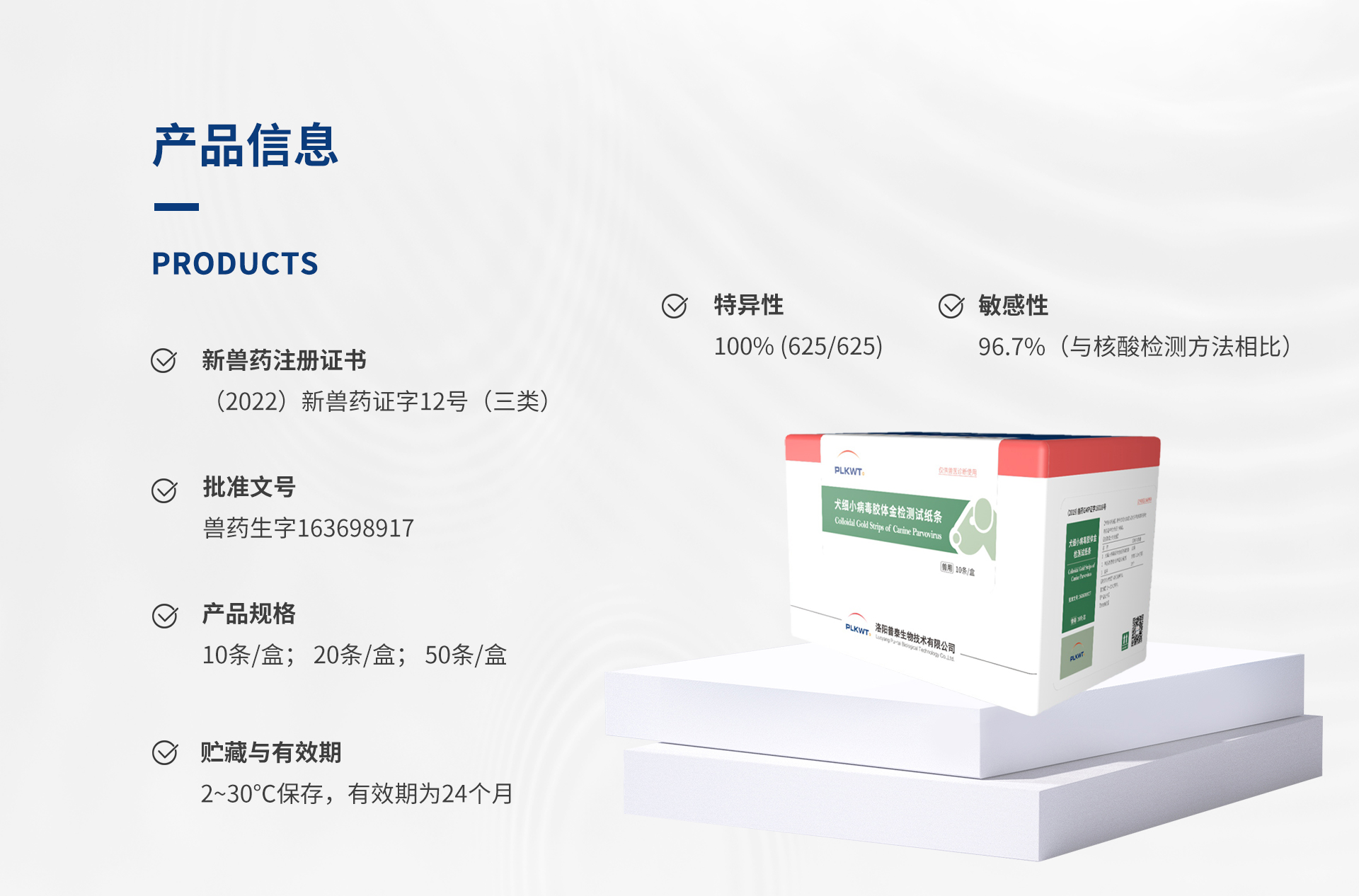 作用與用途: 用于檢測犬糞便、肛拭子和病毒培養物等樣品中的犬細小病毒